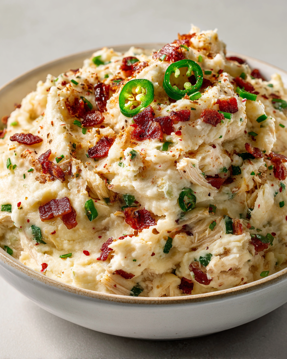 This recipe is inspired by classic comfort flavors but elevated with smoky notes and a subtle kick of spice. The combination of bacon and jalapeño has long been loved for its balance of salty, spicy, and savory, while chicken provides a hearty, protein-rich foundation. When everything is mashed together into a creamy, scoopable dish, the result is something that feels cozy, satisfying, and crave-worthy.
