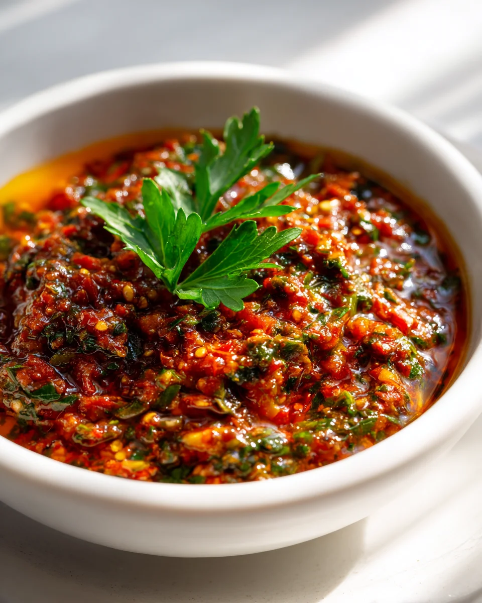 Smoky Red Chimichurri is a vibrant and flavorful sauce that brings a touch of the Argentinean grill right to your kitchen. This zesty condiment has a rich history, rooted in the culinary traditions of South America, where it has long been celebrated as the perfect accompaniment for grilled meats. What makes Smoky Red Chimichurri particularly special is its unique combination of fresh herbs, garlic, and the added depth of smokiness, which elevates it beyond traditional chimichurri recipes. People love it not just for its robust flavor but also for its versatility; it can be drizzled over grilled steaks, tossed with roasted vegetables, or even used as a marinade. Once you try Smoky Red Chimichurri, you’ll understand why it has become a staple in kitchens around the world.