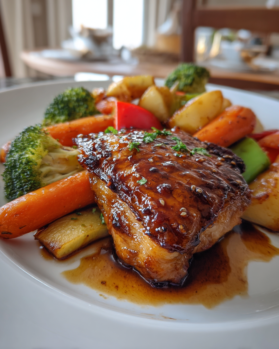 The beauty of this one-pan dinner is that it welcomes you in, no matter how busy or tired you are. It invites you to enjoy cooking without stress, without mess, and without complicated steps. It’s the kind of dish where everything works together harmoniously: the vegetables roast and caramelize, the chicken transforms into something sticky and glorious, and the glaze coats everything in shining perfection. If home-cooked meals had love languages, this one would speak all of them warm, comforting, nourishing, and irresistibly delicious.