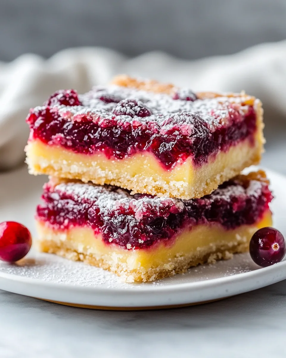 Now, let’s talk about how to truly make these dazzling bars shine when serving them. While they are absolutely divine enjoyed simply at room temperature or chilled straight from the fridge, there are a few ways to elevate the experience. A delicate dusting of powdered sugar just before serving adds a beautiful, ethereal finish and a touch more sweetness. For an extra flourish, consider pairing a square with a dollop of freshly whipped cream or a scoop of high-quality vanilla bean ice cream; the creamy richness provides a lovely contrast to the bars’ intensity. If you’re serving them for a more formal occasion, a sprig of fresh mint or a few extra whole cranberries can really make the presentation pop. They’re fantastic with an afternoon tea, a perfect bright ending to a heavy dinner, or even a delightful addition to a brunch spread. And don’t forget, these bars travel incredibly well, making them an excellent choice for potlucks, picnics, or as a thoughtful homemade gift for friends and family. The versatility means you can enjoy them year-round, though they certainly feel extra special during the cooler months when cranberries are in peak season, bringing a burst of color and flavor to any table.