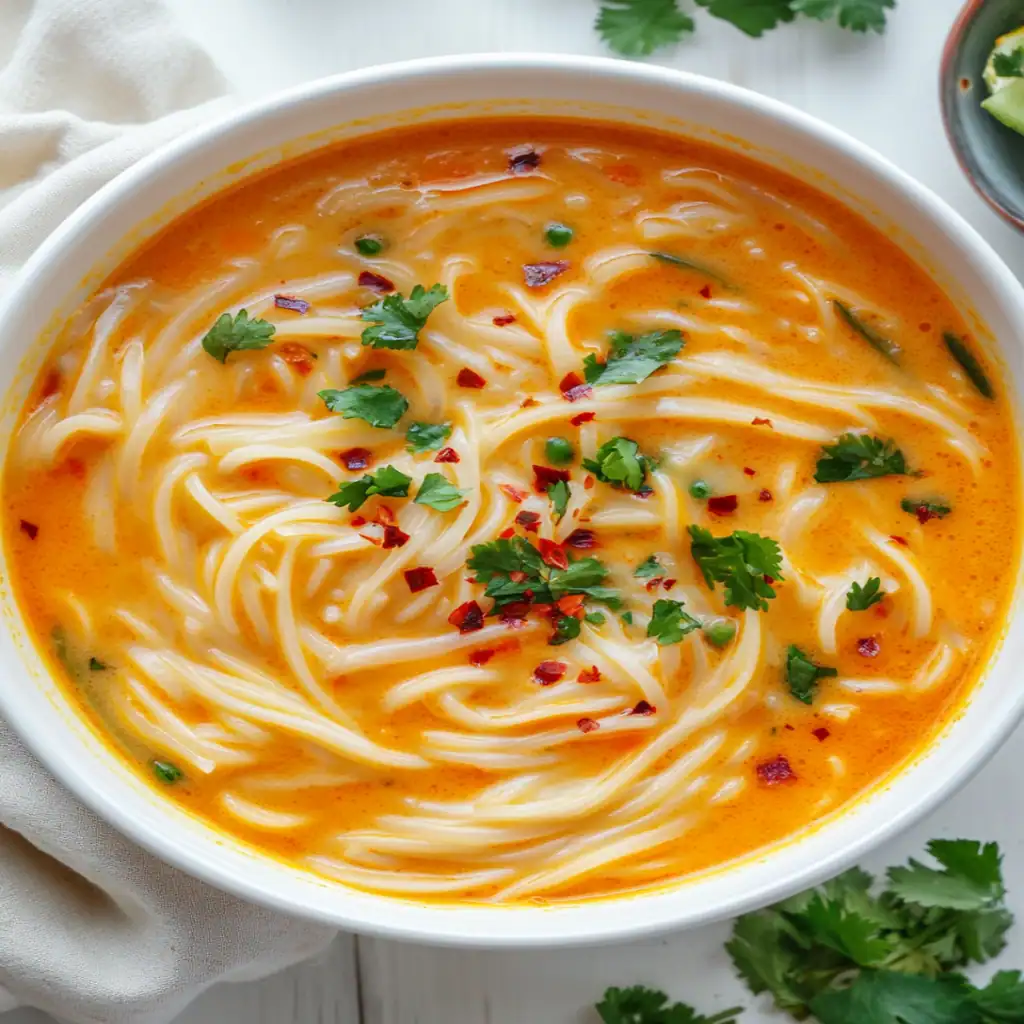 Keywords: Thai coconut curry soup, creamy Thai noodle soup, coconut milk soup, easy Thai soup recipe, spicy curry soup