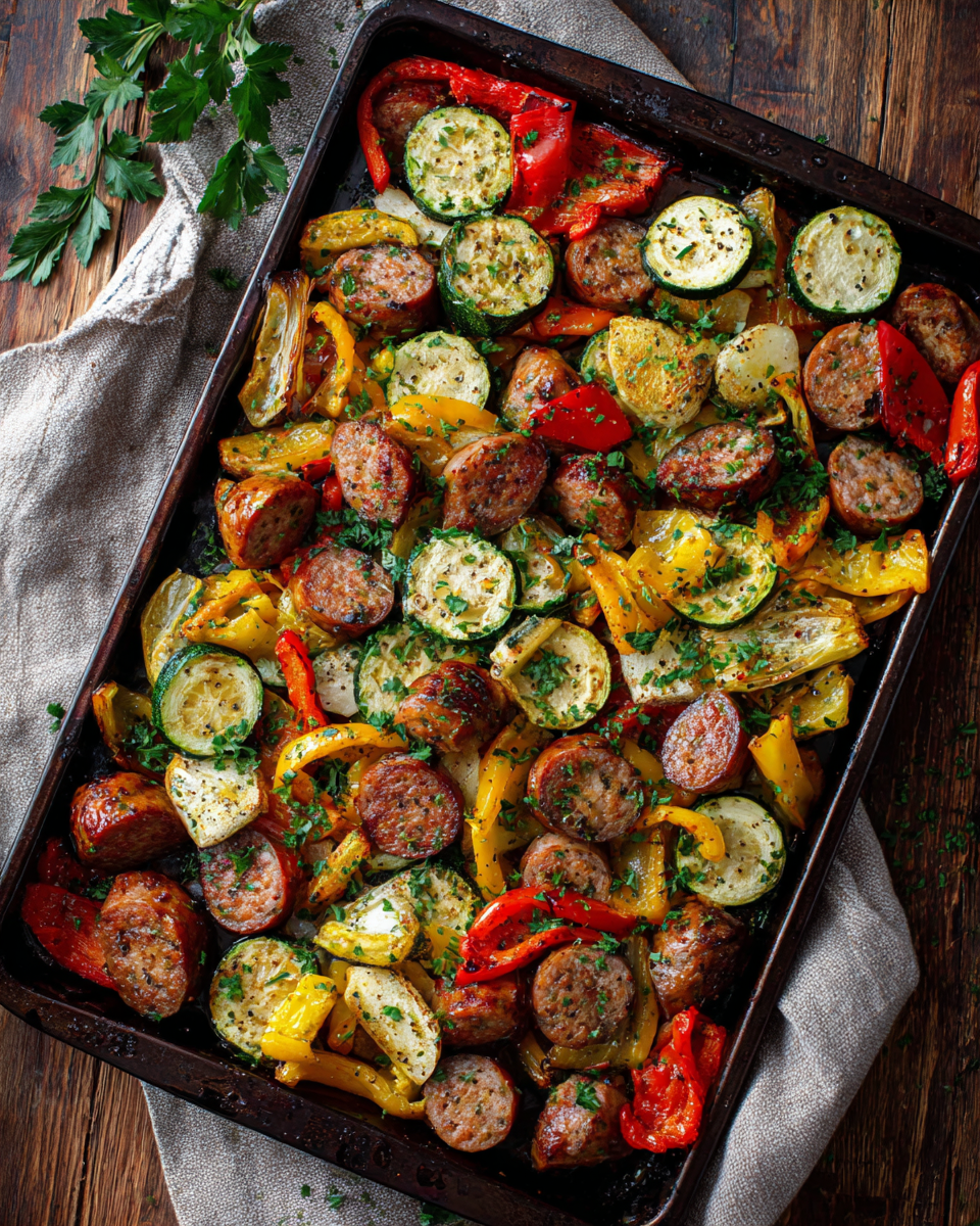 Every forkful bursts with contrast and flavor. The sausage turns crisp and caramelized on the outside while staying juicy inside. The bell peppers and onions roast into soft, sweet bites that mingle with garlicky olive oil. Zucchini and squash soak up all those savory juices, making the whole dish rich, smoky, and perfectly balanced. It’s comfort food with a healthy twist.