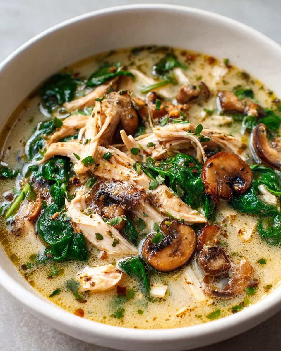 A soul-warming, creamy Rotisserie Chicken Mushroom Soup, combining tender rotisserie chicken with savory mushrooms in a rich, flavorful vegetable broth for a comforting and satisfying weeknight meal. This recipe uses convenient pre-cooked rotisserie chicken and simple ingredients, creating a delightful and easy dish.