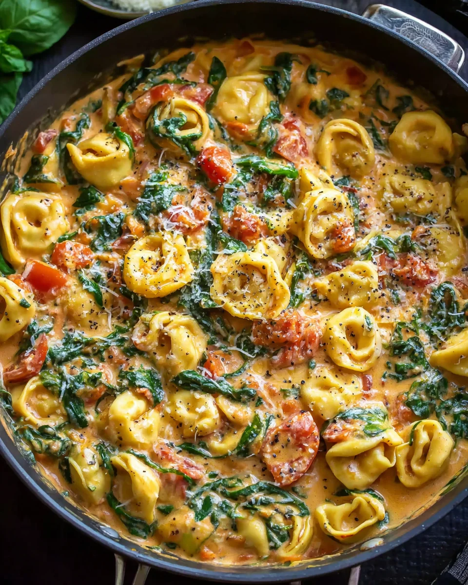 - Serve immediately and prepare to enjoy the comforting, savory, and utterly delicious experience of this homemade dish. This recipe is absolutely perfect for a cozy weeknight meal that feels incredibly special, yet it’s impressive enough to serve when you have company over. It truly is a satisfying one-pan wonder that combines tender tortellini with a luscious tomato, spinach, and cream sauce that everyone will adore. If by some miracle you have leftovers, they are also delightful the next day; just gently reheat on the stovetop with a splash of extra broth or cream to loosen the sauce and bring it back to its perfect consistency. Enjoy every spoonful of this hearty and delicious meal!