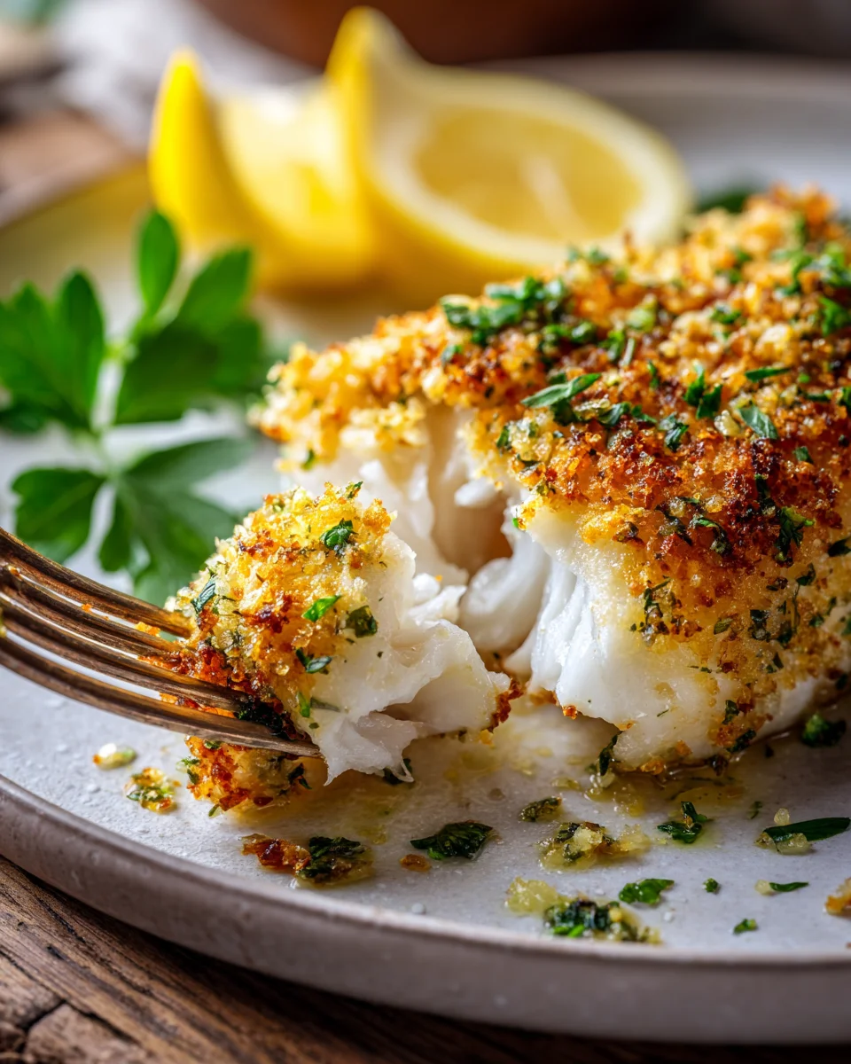 What makes this recipe an absolute must-try? It’s the perfect harmony of robust flavors and delightful contrasts. Imagine biting into that perfectly golden, crispy crust, seasoned with aromatic garlic and bright lemon zest, giving way to incredibly tender, flaky cod that practically melts in your mouth. The “crunch” isn’t just for show; it’s a critical textural component that makes every single forkful exciting. The “zesty” punch from the lemon cuts through the richness, leaving your palate feeling refreshed, while the “garlic” adds that comforting depth we all adore. It’s light yet satisfying, wholesome yet utterly decadent. I’ve cooked this countless times for family and friends, and the unanimous feedback is always one of delightful surprise at how something so simple can deliver such profound flavor. It truly embodies the joy of home cooking – creating something extraordinary from accessible ingredients that leaves everyone feeling nourished and happy. This recipe truly stands out because it delivers on its promise of a restaurant-quality meal right in your own home, making healthy eating both enjoyable and exciting.